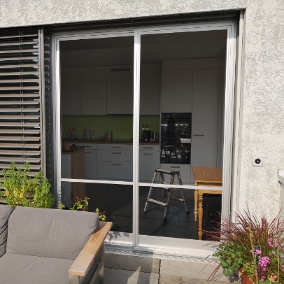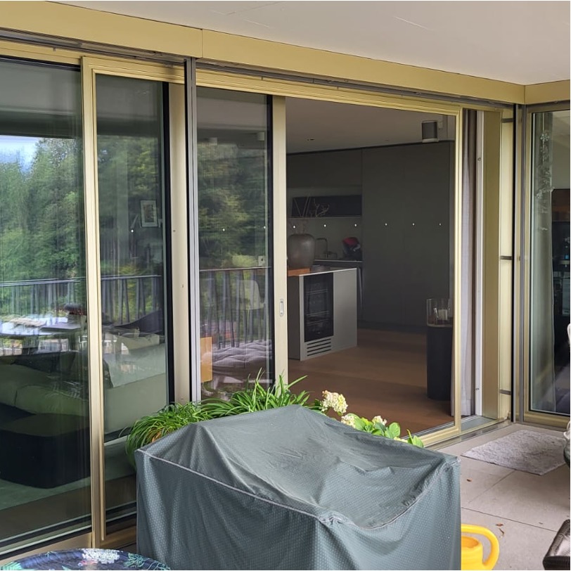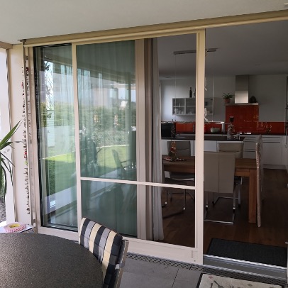Eine Fliegengitter-Schiebetüre - auch Schiebeanlage genannt - kommt meistens bei grossen Balkon- und Terrassenöffnungen mit Hebeschiebetüren und bei Wintergärten zum Einsatz. Unsere Schiebetüren sind trotz geringer Einbautiefe sehr robust und lassen sich dank geräuscharmen Laufrollen leicht und leise bewegen. Optional kann die Fliegengitter-Schiebetüre mit einer Fussmulde gefertigt werden, damit Sie sie auch ohne freie Hand bedienen können.