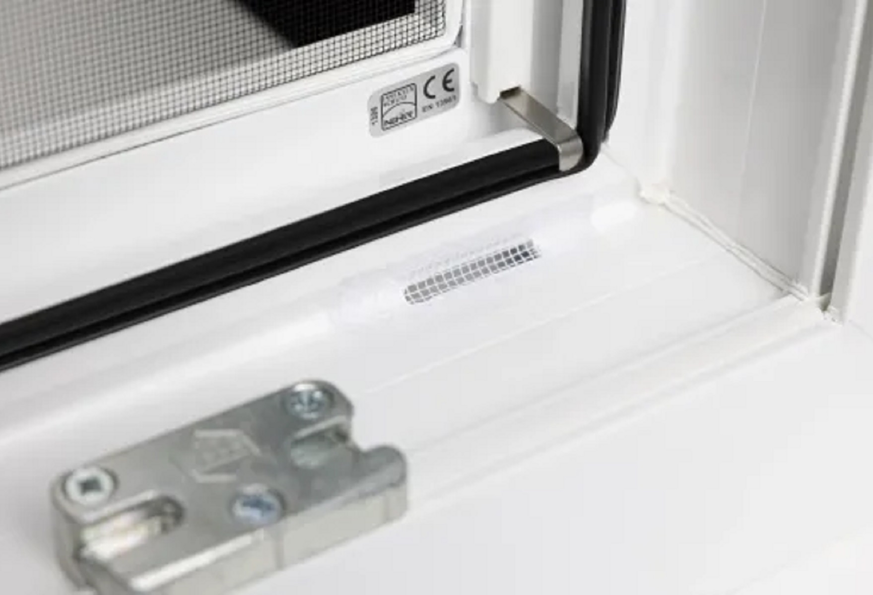 Mit einem Fliegengitter-Pflaster wird der Entwässerungsschlitz im Fenster- und Türrahmen abgedeckt, ohne dass der Schlitz vollständig geschlossen wird. Spinnen und andere Krabbeltiere, die einen Entwässerungsschlitz gerne als Versteck nutzen, bleiben draussen, Regenwasser und Spritzwasser können weiterhin abfliessen.
