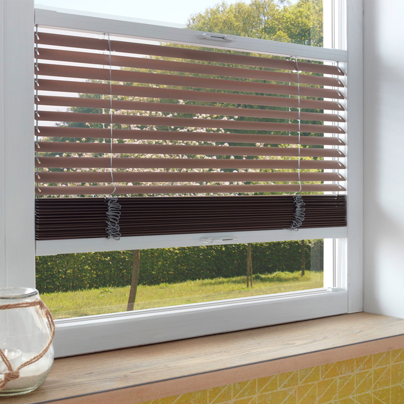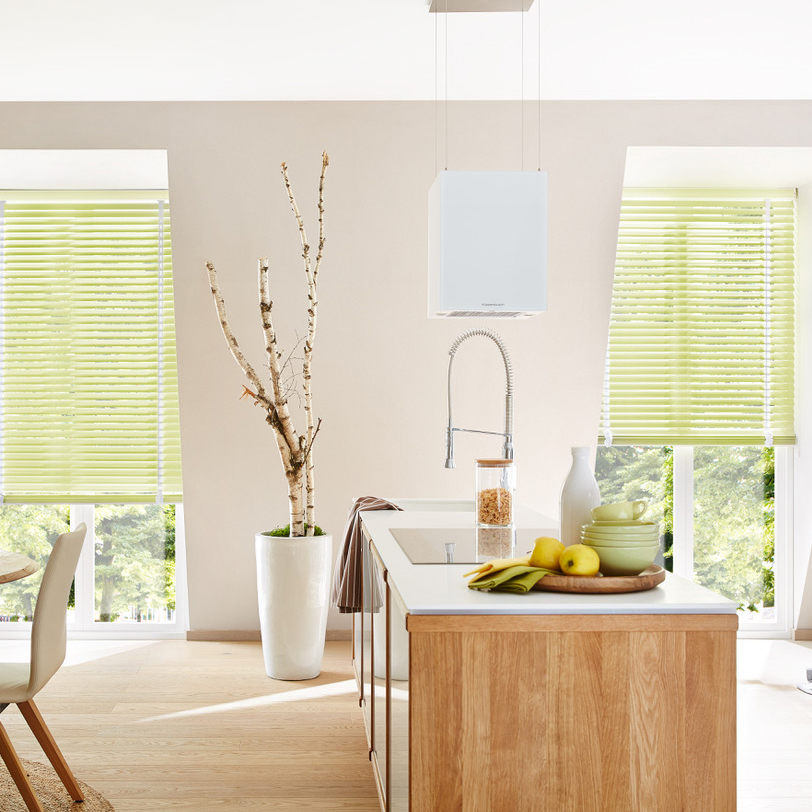 - Es sind Aluminium-, Holz- oder Kunststofflamellen erhältlich
