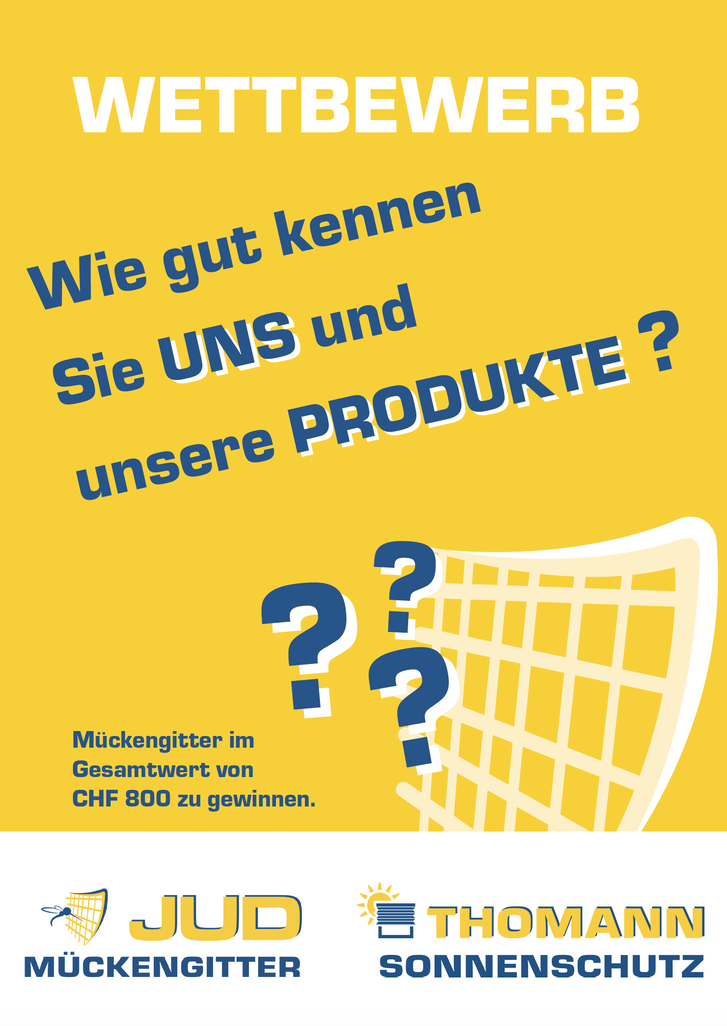 Mit Ihrer Teilnahme stimmen Sie zu, dass Ihnen Informationen von der Jud Thomann AG zugesandt werden können. Ihre Daten werden nicht an Dritte weitergegeben. Es besteht kein Kaufzwang. Die Teilnahmebedingungen können von der Jud Thomann AG jederzeit geändert werden. Über den Wettbewerb wird keine Korrespondenz geführt. Der Rechtsweg ist ausgeschlossen. Es gilt ausschliesslich schweizerisches Recht.